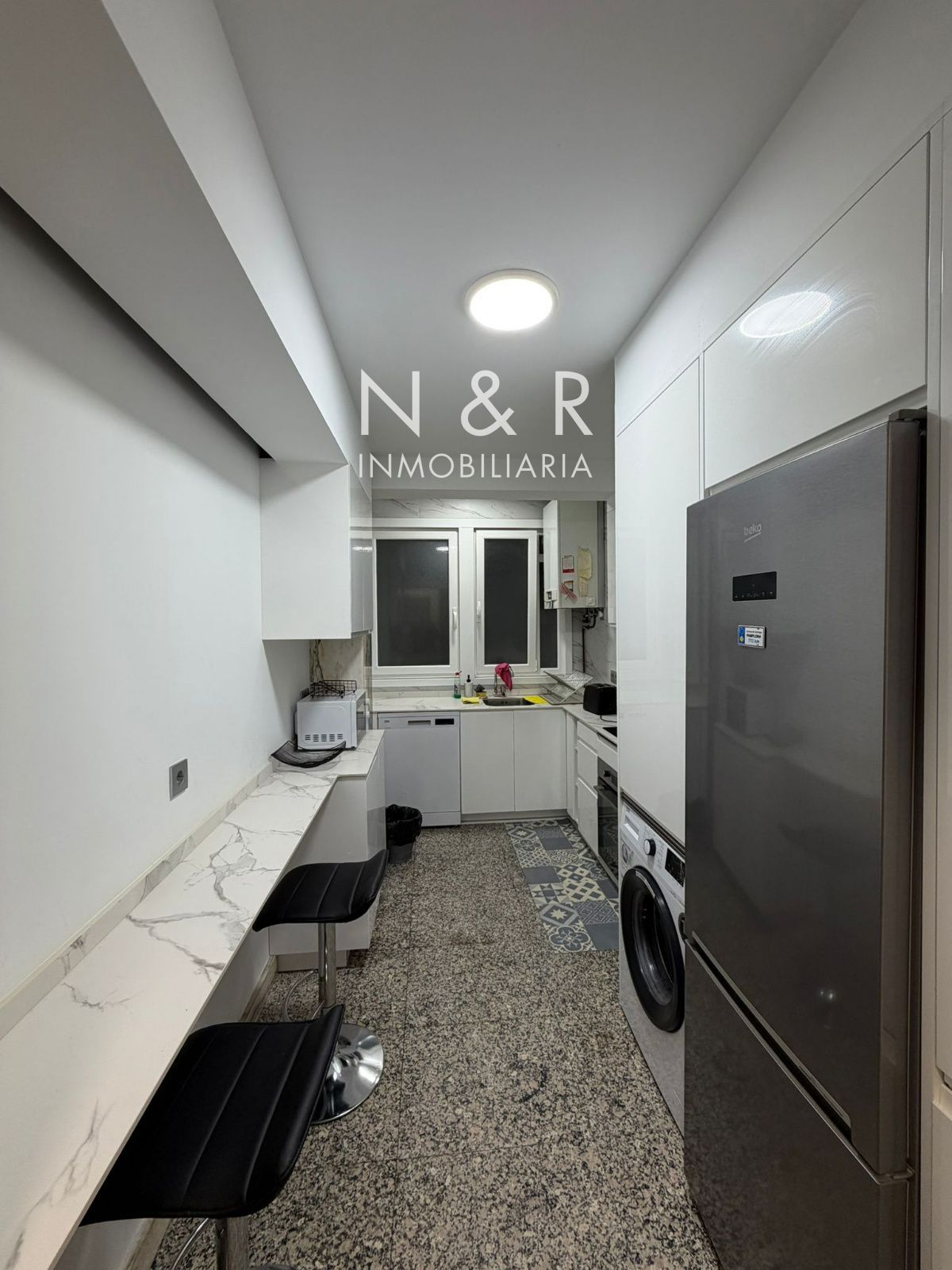 El piso se encuentra distribuido en 4 habitaciones totalmente amuebladas, 3 habitaciones dobles y una individual, cocina amplia, salón comedor, y dos baños con plato de ducha totalmente reformado.